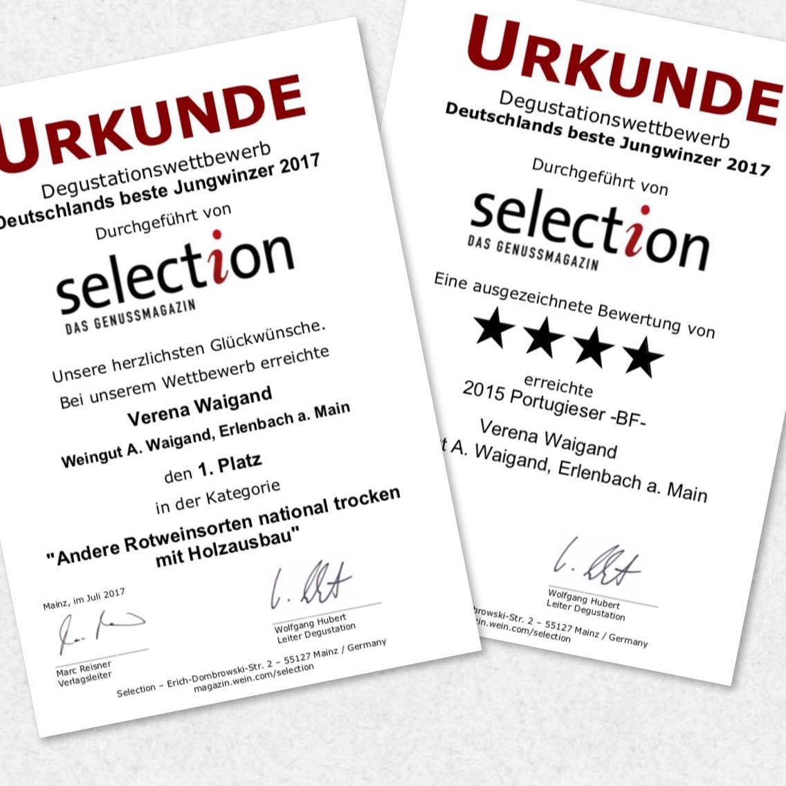 Im September 2017 veröffentlichte die Zeitschrift Selection die Ergebnisse des „Degustationswettbewerbs Deutschlands beste Jungwinzer 2017“. Bei diesem Wettbewerb stellten rund 100 Nachwuchswinzer aus Deutschland ihre Weine zur Verkostung an.